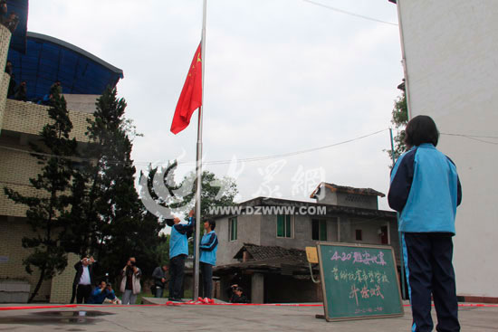 大眾網蘆山4月24日訊(特派記者 李兆輝 盛堃 尹海洋)4月24日10時,雅安蘆山縣國張中學舉行了一場特別的升旗儀式,這也標志著震區首所學校的初三學生正式復課。但現場只來了187名學生,另外233名初三學生因震后道路堵塞或通信不暢等原因還未走進“板房課堂”。