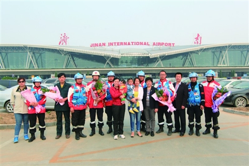“你們辛苦了,歡迎回家!”昨天下午,前往雅安地震災區救援的山東省紅十字藍天救援隊部分隊員返濟。15:30,省紅十字會會議室里響起熱烈的掌聲。部分隊員隨后給記者講述了在災區難忘的7天救援經歷。