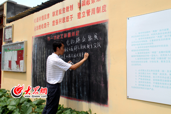 省金融辦派駐魚山鎮安平店的“第一書記”李騰飛定期更換宣傳欄上的內容。