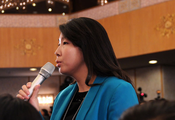 3月2日,全國政協十二屆一次會議新聞發布會在人民大會堂一樓新聞發布廳召開。圖為新華社記者提問。新華網/中國政府網 陳競超 攝
