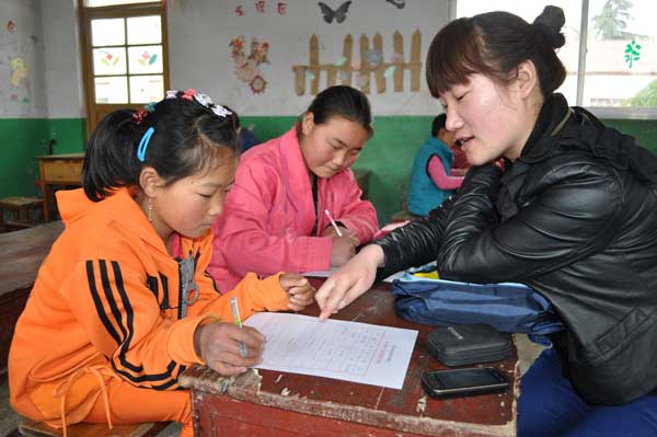 小雨點公益社的志愿者正在了解貧困兒童的心愿