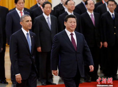 國家主席習近平12日在人民大會堂同美國總統奧巴馬舉行會談。