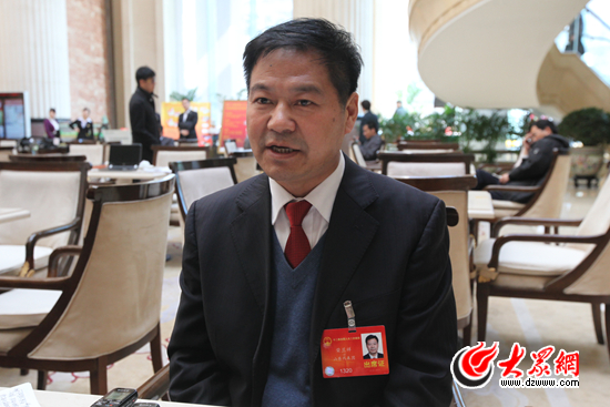 全國人大代表、山東藍翔職業培訓學院院長榮蘭祥接受大眾網記者采訪。特派記者 尹海洋 攝