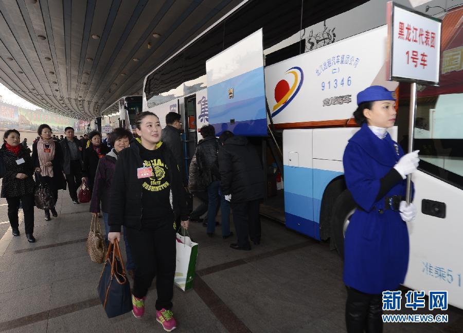 3月2日,出席十二屆全國人大二次會議的黑龍江代表團乘坐火車抵達北京火車站。新華社記者戚恒攝