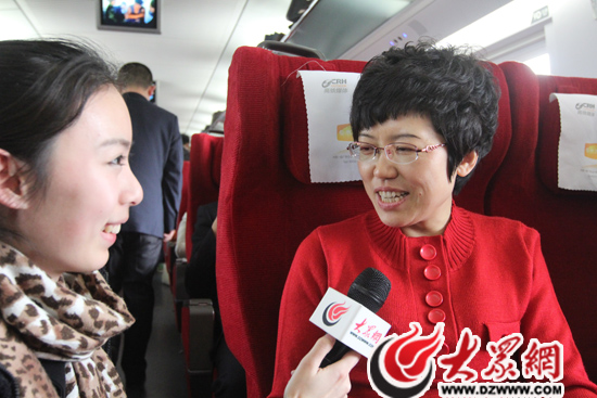 全國(guó)人大代表張淑琴在列車上接受大眾網(wǎng)記者采訪。
