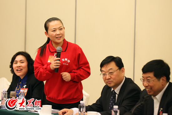 “我是從農村來的。”全國人大代表、德州寶麗潔物業管理有限公司總經理焦文玉舉手示意。