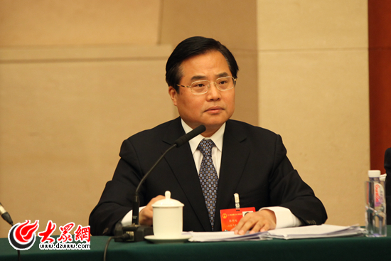 3月6日下午,山東代表團舉行開放日,山東青島市委副書記、市長張新起回答記者提問。特派記者 馬俊驥 攝
