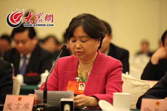 9日下午,在十二屆全國人大二次會議山東代團(tuán)全體會上,全國人大代表、銀香偉業(yè)集團(tuán)董事長王銀香建議修訂《大氣污染防治法》。大眾網(wǎng)特派記者 尹海洋 攝