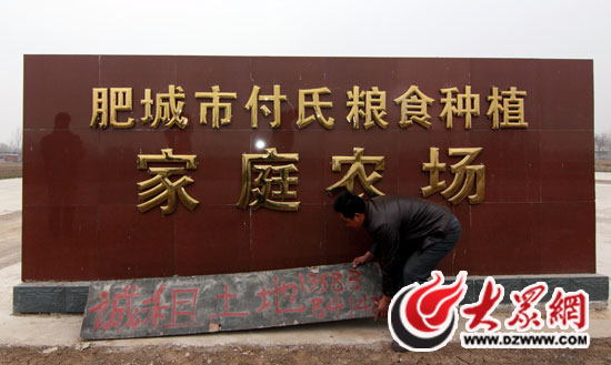 肥城市王瓜店鎮付樹勇在自己的“家庭農場”外打出了求租土地廣告。