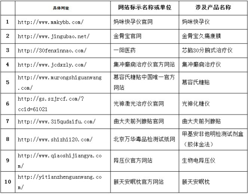 附:10家違法發布虛假醫療器械信息網站名單