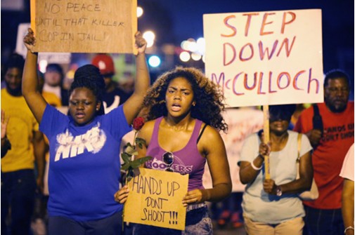 事件的起因:8月9日,密蘇里州弗格森鎮(zhèn)手無(wú)寸鐵的黑人青年邁克爾·布朗(Michael Brown)被白人警察達(dá)倫·威爾遜(Darren Wilson)槍殺。事件發(fā)生后第二天,當(dāng)?shù)鼐烷_(kāi)始有了抗議活動(dòng),美國(guó)各地也一直有零星抗議,直到圣路易縣大陪審團(tuán)作出不予起訴威爾森的決定后,抗議活動(dòng)發(fā)酵到頂點(diǎn)。