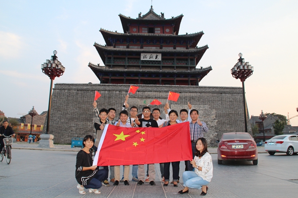 大眾網聊城記者站的全體同事來到光岳樓前,和國旗合影,為中國點贊!