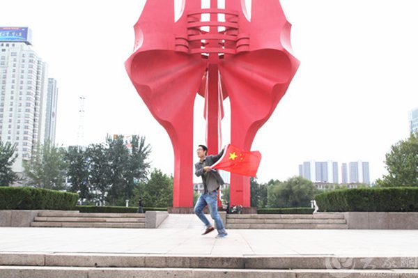 臨沂:與國旗合影,為中國點贊