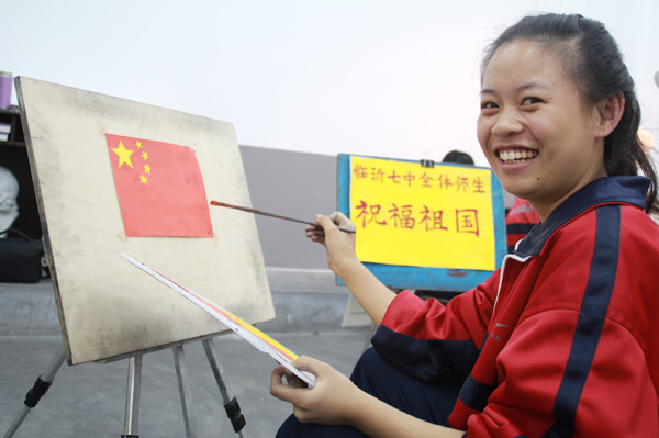 臨沂七中高三九班學生胡娜手繪國旗為中國點贊