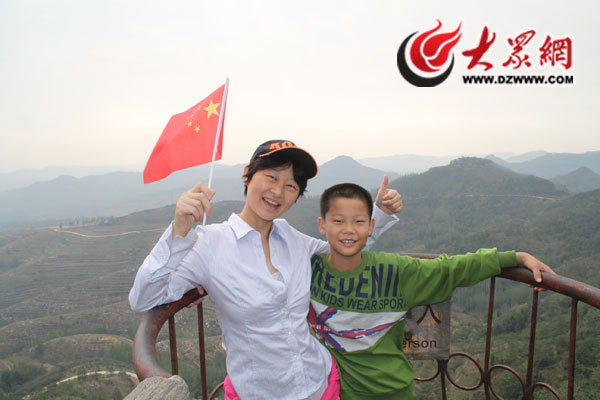 大眾網網友在蒙山與國旗合影,為祖國點贊