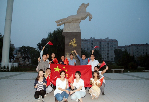2014年9月23日,大眾網淄博記者站全體員工與國旗合影,為國旗點贊。