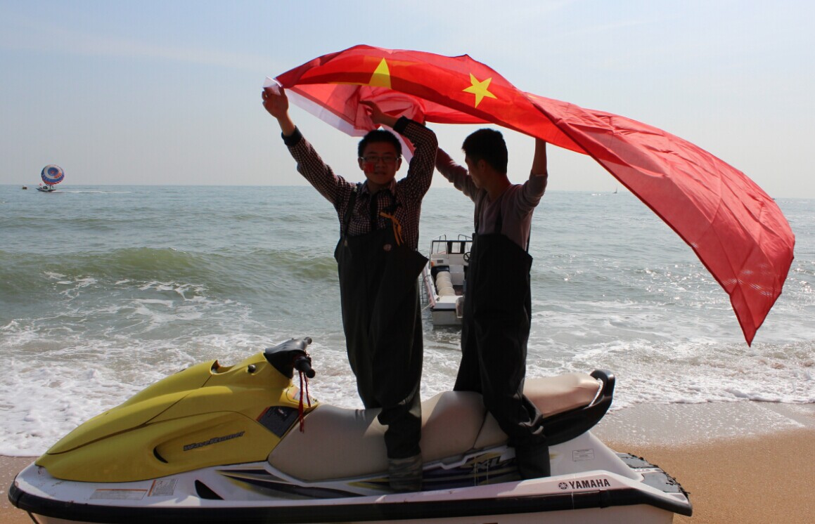 日照市萬平口景區,日照某兒童培訓學校的老師們共同與國旗合影,為祖國點贊。
