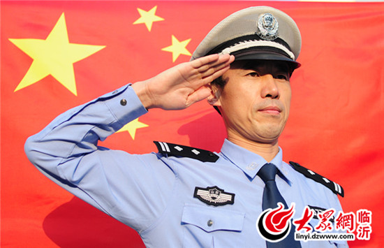 臨沂交警直屬一大隊(duì)六中隊(duì)中隊(duì)長(zhǎng)石運(yùn)濤與國(guó)旗合影