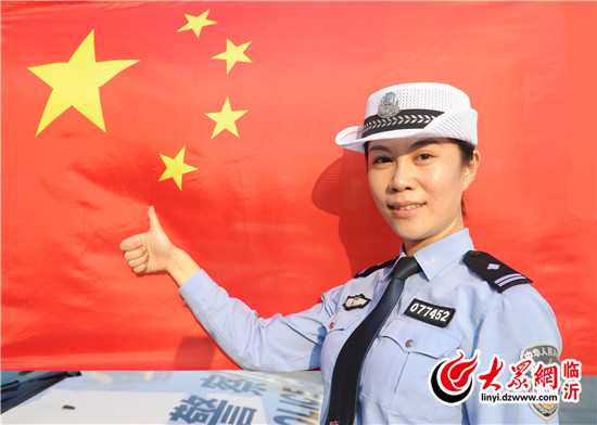 臨沂交警直屬一大隊(duì)宣傳科科長(zhǎng)曲紅與國(guó)旗合影,為中國(guó)點(diǎn)贊
