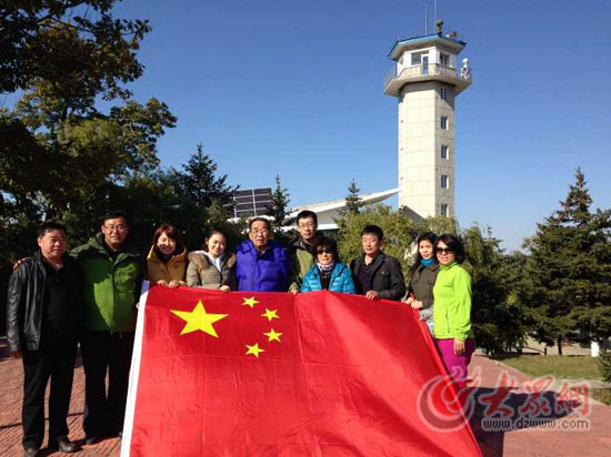 10月3日,祖國最東端黑龍江省佳木斯市烏蘇鎮邊防哨所,游客共同祝福祖國。 1