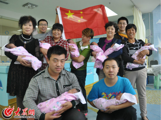 ,為中國點贊。十一當天,濟南婦幼保健院迎來40位“國慶寶寶”,一號到三號,該院一共有121位寶寶降生。圖片中,國旗正下方三位寶寶從左到右分別取名叫玉米、大米、小米。其中,大米和小米是雙胞胎兄弟。記者 韋輝 攝