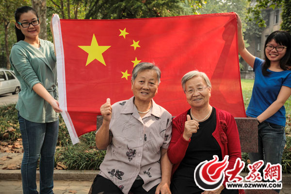 6旬老姐妹的國旗情節,與國旗合影,為祖國點贊!
