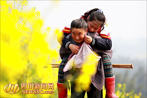 向其友奶奶今年已66歲高齡,孫女邱方梅自出生時就患有膝蓋畸形,每走一步都需要人背。在小方梅兩歲半時,母親改嫁,父親離家出走,此后一直靠爺爺、奶奶照顧。小方梅慢慢長大了,奶奶知道她渴望著和其他孩子一樣進入校園,便開始背著她走進學校。