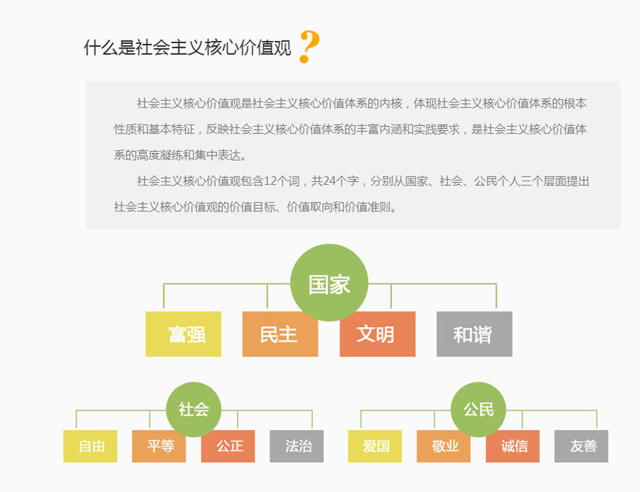 社會主義核心價值觀是社會主義核心價值體系的內核,體現社會主義核心價值體系的根本性質和基本特征,反映社會主義核心價值體系的豐富內涵和實踐要求,是社會主義核心價值體系的高度凝練和集中表達。