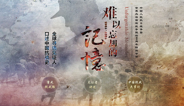 自2014年7月起,大眾網記者分赴北京、山東、河南、江蘇、臺灣地區,并連線美國紐約、日本東京,尋訪到著名抗戰將領后人、抗戰老兵、抗戰武裝隊伍的后代等10位代表人物,聽他們口述精彩的戰斗故事,并首度披露一些不為人知的抗戰細節。通過這些“難以忘卻的記憶”,弘揚抗戰精神,珍惜美好生活,激勵我們團結一心、自強不息,向著中華民族偉大復興的中國夢奮勇前進。