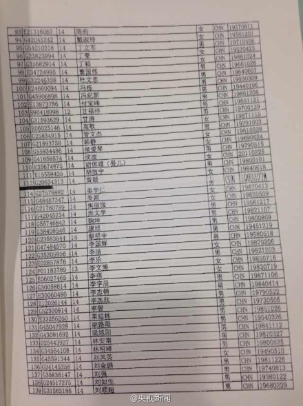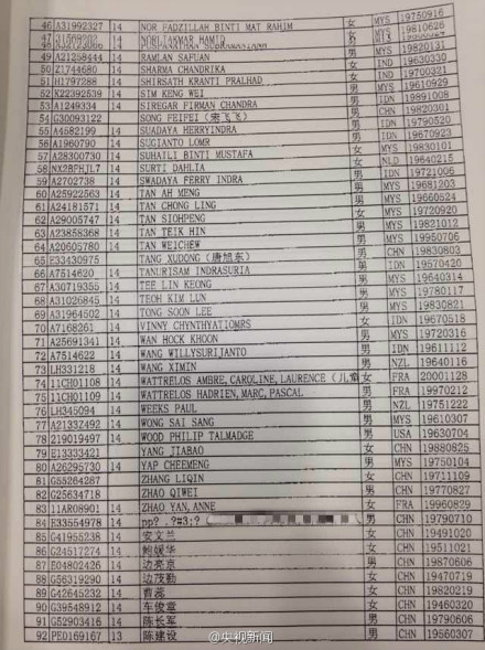 該航班上共有239人,其中中國人154名。