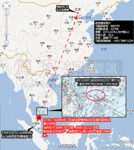 【媒體所稱“發(fā)現(xiàn)地點(diǎn)”為失聯(lián)前最后位置】越南海上搜救部門告訴@新國際 駐越南分社報(bào)道員,越南媒體所報(bào)道的信號發(fā)現(xiàn)位置是飛機(jī)失去聯(lián)絡(luò)前的最后位置。