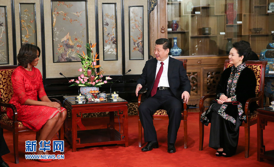 3月21日,國家主席習近平和夫人彭麗媛在北京釣魚臺國賓館會見美國總統奧巴馬夫人米歇爾。 新華社記者 蘭紅光 攝 新華網北京3月21日電(記者郝亞琳)國家主席習近平和夫人彭麗媛21日晚在釣魚臺國賓館會見美國總統奧巴馬夫人米歇爾。 習近平歡迎米歇爾女士偕母親羅賓遜夫人和女兒訪華,請她轉達對奧巴馬總統的親切問候和良好祝愿。 習近平強調,中美關系對兩國和世界都十分重要。我珍視同奧巴馬總統業已建立的良好工作關系和友誼。我們通過會晤、通話、通信等方式保持著密切聯系。我期待過兩天在荷蘭海牙同奧巴馬總統再次會晤,也歡迎他今年11月來北京出席亞太經合組織領導人非正式會議。我相信,通過雙方共同努力,中美關系一定會朝著構建新型大國關系的目標不斷向前發展。 米歇爾向習近平轉達奧巴馬總統的問候。她表示,我和母親、女兒一起到國外旅行非常難得,能夠到中國訪問,更感榮幸。我們全家感謝習近平主席會見和彭麗媛女士邀請,感謝中方熱情接待。今天是我們訪問活動的第一天。我們有機會同中國青年學生交流,還參觀了故宮。這些經歷讓我們難忘。我希望今后有更多機會來中國訪問。我鼓勵我的女兒和美國青少年多了解和學習其他國家的傳統和文化。現在有越來越多的美國孩子在美國學習中文或到中國留學。青少年交流對美中關系非常重要。 習近平對米歇爾說,你們這次訪問以教育為主題,這很好。尊師重教是中國的傳統。教育事關國家未來,年輕人是國家希望。中美教育交流發展很快。兩國年輕一代可以通過交流擴展知識和視野,增進相互了解和友誼。 習近平表示,你們這次除北京外,還要去西安和成都。祝你們在中國度過一段愉快、難忘的時光。 彭麗媛表示,中美文化和教育各有特色,可以互學互鑒。希望更多的美國朋友能夠分享你們在中國的見聞,了解中國悠久的歷史文明和當代發展進步,也希望你們把中國人民的友誼傳遞給美國人民。