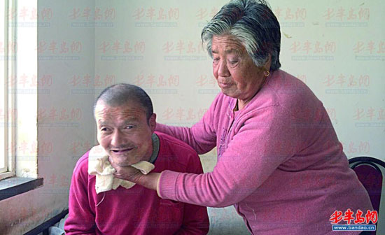 蘇桂云的丈夫在2001年去世,她就開始一個人照顧著大兒子。“都55年了,他從未叫我一聲"媽"。”蘇桂云慈祥地看著辛克洪,不免有些心酸。而辛克洪卻什么都聽不懂,只是呵呵地笑。“我記得孩子小的時候就有很多人勸我和孩子他爸,讓我把孩子送到精神病院去,但是我們都舍不得。”蘇桂云說,自己的孩子還是自己照顧好,別人照顧他自己不放心。