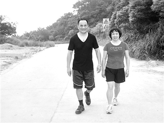 晉江明偉鞋服有限公司董事長(zhǎng)張聰明(左)每天堅(jiān)持爬山,快60歲了還去香港讀MBA。(資料片)
