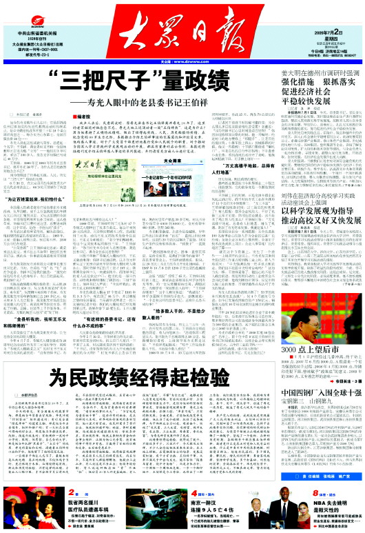 2009年本報(bào)頭版刊發(fā)王伯祥事跡報(bào)道。