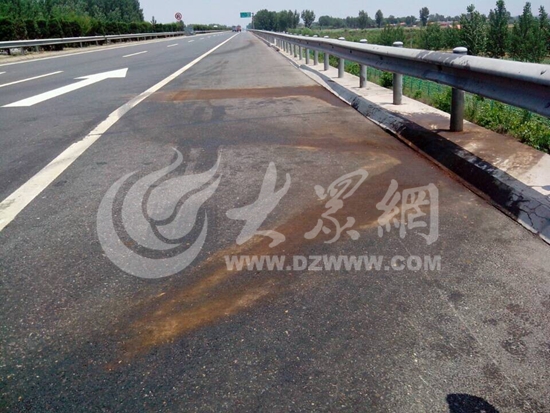 這是寶馬車撞上第一輛白色捷達車的現場,地上是油漬。(記者 李敏 攝)