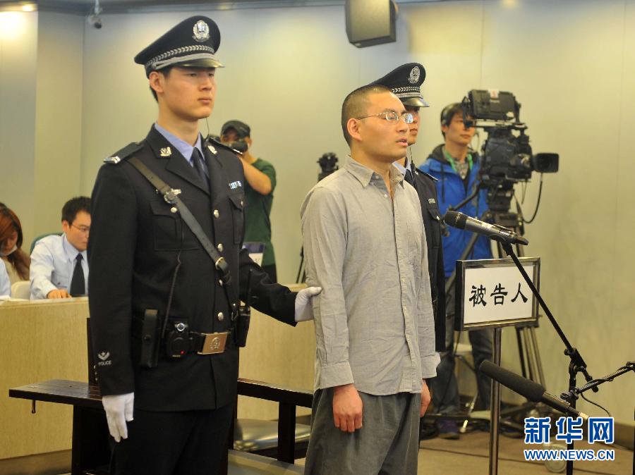 4月11日,秦志暉被帶入法庭。當日,備受關注的網絡紅人秦志暉(網名“秦火火”)誹謗、尋釁滋事一案在北京市朝陽區人民法院依法公開開庭審理。 新華社記者 公磊 攝