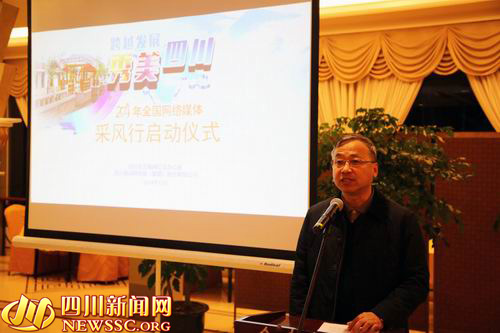 啟動儀式上,陶俊培發表了熱情洋溢的致辭,對各家網絡媒體長期以來給予四川宣傳工作的大力支持表示了衷心地感謝。陶俊培希望各家網絡媒體在川期間能多聽、多看、多拍、多寫,充分發揮互聯網的傳播優勢,展示媒體正能量,以“跨越發展·秀美四川”為主題,宣傳四川在實現兩個跨越發展過程中的新舉措,在實現又好又快發展上的新進展,感受四川秀美山川、悠久歷史的獨特魅力。