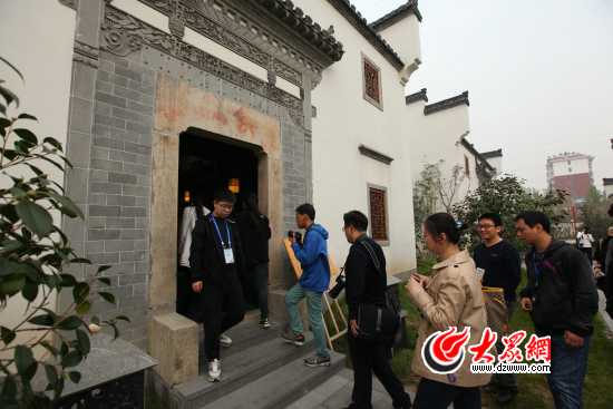 29日下午,“聚焦‘一圈一帶’第十屆網路媒體山東行”采訪團來到濱州黃河三角洲文化產業園蓮華書院。一片片白墻灰瓦的徽派建筑,一層樓高的老戲臺,蜿蜒的回廊帶著大家通往粗布藝術館和星云大師一筆字書法展堂。 大眾網記者 王長坤 攝 - 副本