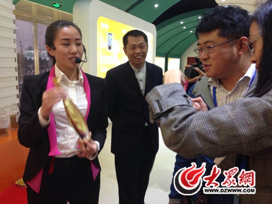 說起牡丹,大家都會想到美麗的牡丹花,但您可知道牡丹還能做商品?牡丹茶、牡丹糕、牡丹籽油……一走進盛華牡丹園的牡丹展覽館,各種牡丹制品便展現在記者們眼前。近年來,菏澤特別重視牡丹全產業鏈布局發展的戰略,2014年,專門安排4000萬元財政扶持牡丹產業化。利用45萬畝牡丹的資源優勢,在大批龍頭企業的帶動下,牡丹從傳統的藥用、觀賞向食品加工、醫藥化工、日用化工、營養保健等九大領域縱深發展。“沒想到小小的牡丹花還能做出這么多產品!”不少記者感嘆到。