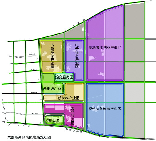 <東部高新區(qū)規(guī)劃面積40平方公里,主要引進高新技術及商貿(mào)物流等節(jié)能環(huán)保項目,已有東方雨虹、北京創(chuàng)導、山東蘭劍物流、順方管業(yè)、瑞那斯節(jié)能門窗幕墻等一批實力雄厚的上市公司和行業(yè)龍頭進駐。
