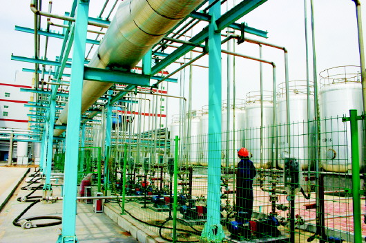 。纪ㄟ^招商引資和扶持本地企業(yè)發(fā)展,臨邑縣投產(chǎn)和在建的以齊魯制藥、信立泰制藥為龍頭的醫(yī)藥企業(yè)及生產(chǎn)基地達20多家,形成一個集產(chǎn)品研發(fā)、藥物鑒定、生產(chǎn)銷售于一體,年銷售收入過百億元的現(xiàn)代生物醫(yī)藥產(chǎn)業(yè)體系。圖為齊魯制藥臨邑生產(chǎn)基地裝置一角。