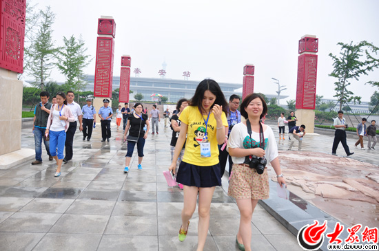 22日上午,“聚焦美麗山東——第九屆中國網絡媒體山東行”南線采訪團記者采訪泰安高鐵站。大眾網記者 熊戈措 攝