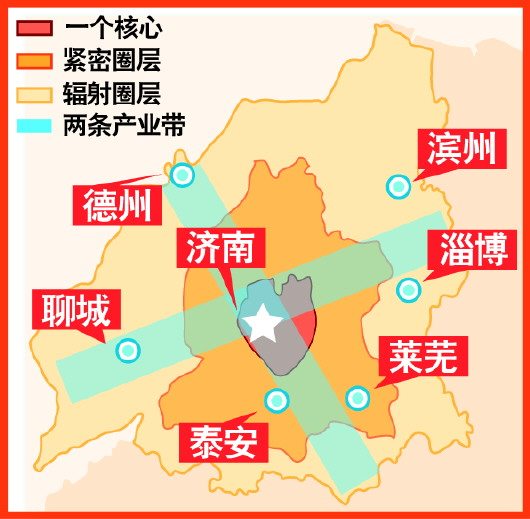 形成濱淄濟聊產業帶和德濟泰萊產業帶,成為支撐經濟圈發展的“十”字形發展軸。