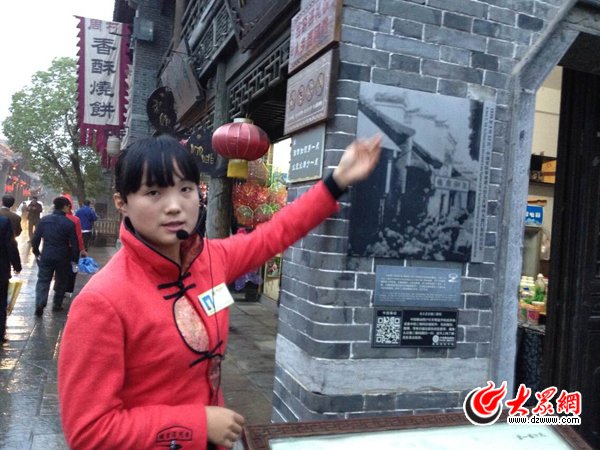 10月30日下午,“聚焦‘一圈一帶’——第十屆中國網絡媒體山東行”采訪團來到棗莊臺兒莊古城。圖為臺兒莊古城工作人員介紹古城情況。記者 王宗陽 攝