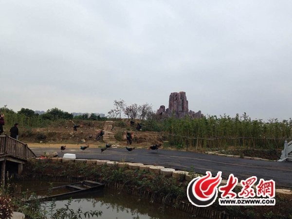 “快看,孔雀向東南方向飛去了!”采訪團的記者們在園區內看到飛來的孔雀,驚喜地招呼大家觀看。在竹林水岸景區內,記者們對美麗的景色所吸引,拿著手中的相機不停地拍照。