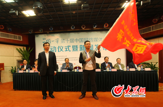 中共山東省委宣傳部副部長、山東省互聯網信息辦公室主任李建軍為采訪團授旗,新華網記者張巖接旗,“聚焦‘一圈一帶’——第十屆網絡媒體山東行”大型采訪活動正式啟動。
