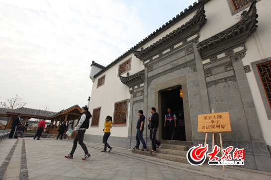 29日下午 ,“聚焦‘一圈一帶’第十屆網路媒體山東行”采訪團來到濱州黃河三角洲文化產業園蓮華書院。一片片白墻灰瓦的徽派建筑,一層樓高的老戲臺,蜿蜒的回廊帶著大家通往粗布藝術館和星云大師一筆字書法展堂。大眾網記者 王長坤 攝