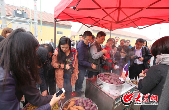30日上午 ,“聚焦‘一圈一帶’第十屆網絡媒體山東行”采訪團來淄博高青縣蓑衣樊村,參觀體驗蓑衣樊村農家樂特色。大眾網記者 王長坤 攝
