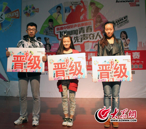本次活動(dòng)由共青團(tuán)山東省委、山東電信、大眾網(wǎng)聯(lián)合主辦,中國(guó)好聲音明星學(xué)員趙晗、城市之音資深DJ安可、2013年飛young校園好聲音季軍張益作為評(píng)委導(dǎo)師親臨現(xiàn)場(chǎng)。比賽當(dāng)日,進(jìn)過激烈的海選,共有30多位選手進(jìn)入復(fù)賽。比賽現(xiàn)場(chǎng),既有耳熟能詳?shù)摹豆廨x歲月》等經(jīng)典歌曲的演繹,也有《泡沫》等流行歌曲的精彩獻(xiàn)唱,30多名選手拿出看家本領(lǐng),爭(zhēng)奪泰安&萊蕪賽區(qū)的前三名。最終吳潔憑借一首《漂洋過海來看你》,獲得冠軍,甜美的嗓音給現(xiàn)場(chǎng)觀眾留下深刻印象;張兆昆憑借一首《不再猶豫》獲得亞軍;鐘婭冬獲得季軍。